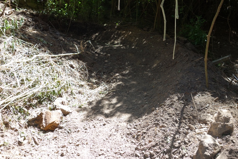 Then, since I seemed to be on a roll, I decided to tidy up another extension that we were coming back to, the ‘rocky’ switchbacks that will join the River Track to Frank’n’Furter, it didn’t take too much to sculpt it out and plant some dirt and rock ready for some Berm Queen action.