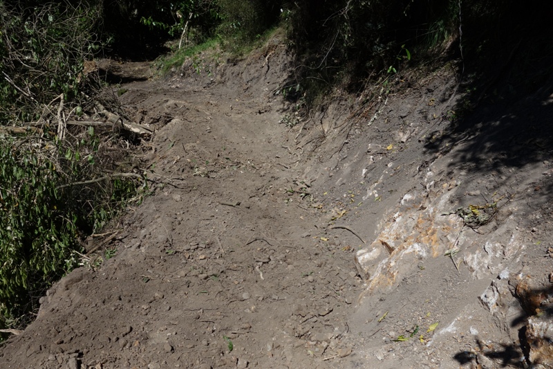 Sunday, we had a pleasant sleep-in and a lazy breakfast and then it was off to the AYUNC track, I was a bit anxious to say the least, as this is the track of my latest downfalls and is at the cusp of my experience and skills. But as with most things, the reality didn’t quite match my imagination, the climb being quite uneventful and the corner with the slip was a doddle to clear, the narrow rock face has hardened magnificently and I was soon diggering and traversing away happily. It was slow steady work but considering the terrain it was good, I got stuck on another rock edge, making a silly mistake of not regularly resetting and thankfully Shane got me out easily again – I understand the principle of getting out but I haven’t got the nerve to be happy with the soft edge and seeing all the dirt go downhill with me on a funny angle.