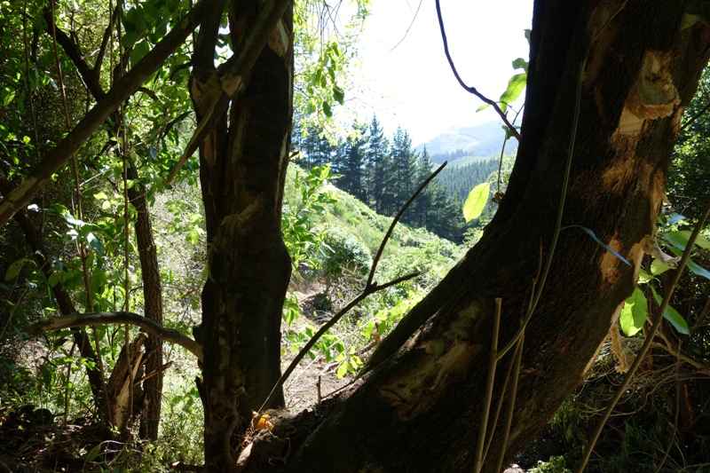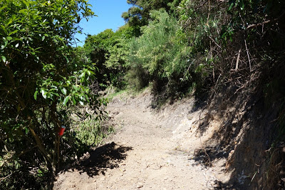 I kicked myself for getting stuck again and promptly took my anger and frustration out on the rock that was in the way and I bashed it into submission and then suddenly it was easy and fast digging. Crazy really. I got to an area that should be the beginning of a near perfect corner in amongst some old Mahoe and ancient and old rock formations. Three quarters of the way round and this large rock that I thought was a surface floater turned out to be an iceberg. After much digging down and a small attack on the Mahoe, I have discovered that both the Mahoe and the rock have a symbiotic relationship and were tied up together. I was about to give up and cut a corner in front of them, I decided to give it another go and finally made the rock start to move. Another 20 minutes of bashing and digging and general swearing, I managed to make it wiggle. At this time I was getting dark, so I gave up. Hopefully a combination of time, an axe and a grubber will help get to those ‘hard to reach places’ that the digger bucket couldn’t get into it. Or something else will come to mind.