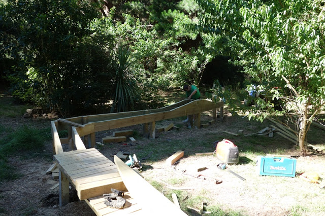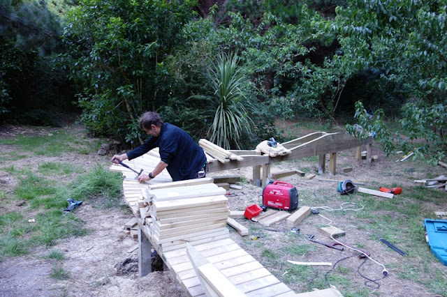 Sunday, Lisa and I got stuck into nailing the remaining tread down on the Skills Area and of course the taste test! Fun times indeed, I can’t wait until the first stage is finished and opened officially. I also had a quick go at putting a boardwalk over the fallen pine, but alas the angles were wrong from my attempt and will require a bit more carpentry skills beyond mine to get it right – next time!