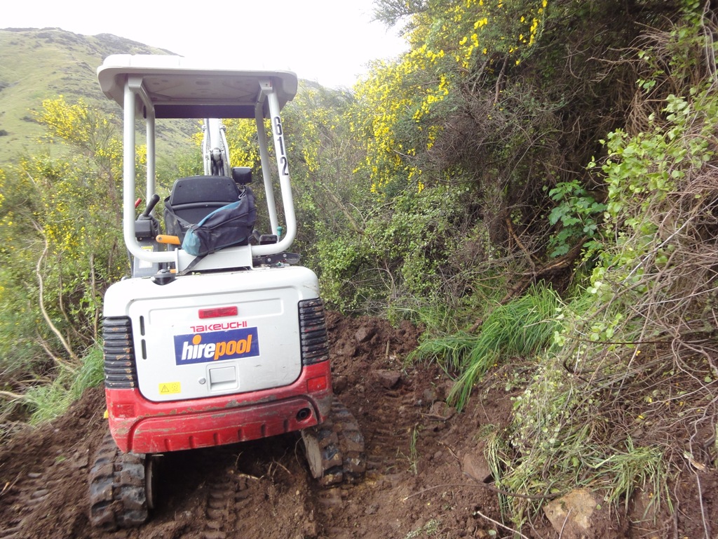 So back to Miners Track, I decided to get the digger again but couldn’t use it on any of the recent tracks with them being too wet, the digger weight would just undo all the hard work, I had already completed a bit of a recce and the 4WD track was OK with no slips and the top of the land had drained nicely. There was forecast rain during the day on Friday and then good all weekend. So away we went.